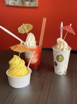 Crèmerie : Une belle variété de produits sont offerts à la crèmerie de Mexiglu! Des sorbets, yogourt glacé, crème glacée dure et molle, slush et même un sundae au churros! Service au volant disponible pour la crèmerie.